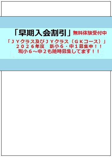 - 「来年度新中1・小6募集」にスイッチ名を変更し、「早期入会割引」についての内容を追記しました。