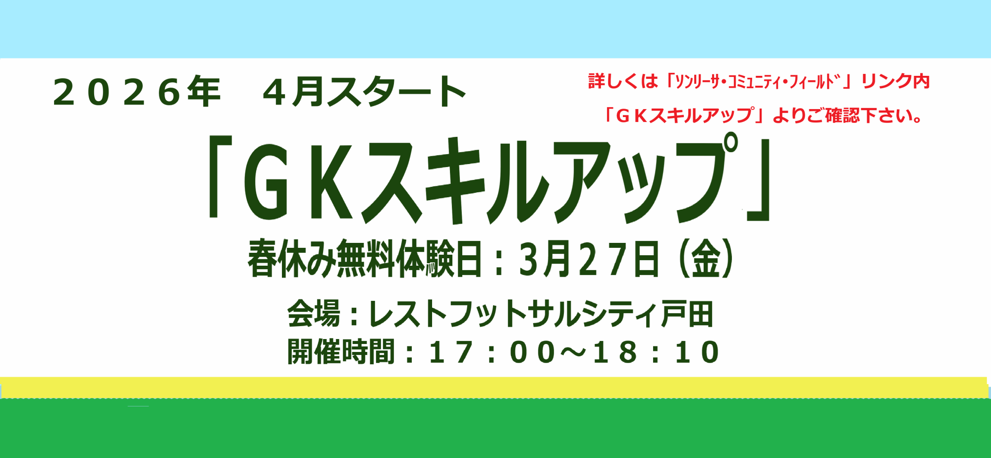 - 新設(リニューアル)コース「GKスキルアップコース」の募集を開始しました。