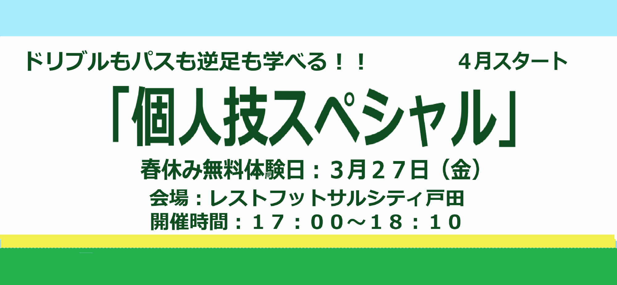 - ソンリーサ・コミュニティ・フィールド サッカースクールに新プログラム「個人技スペシャル」のページをアップしました